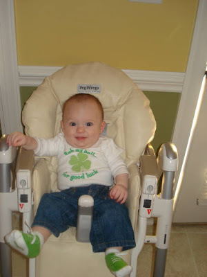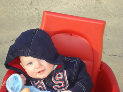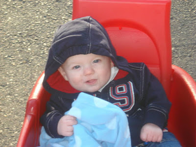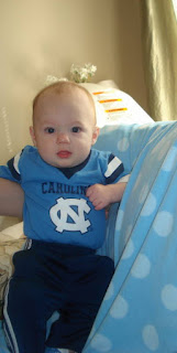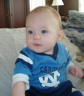This past week was a very busy week. Crawford started daycare at Village Kids! It was exhausting for Crawford and us but I think he enjoyed it. He did not take more than an hour nap each day but he was still very Happy when we picked him up. He would fall asleep the minute we got in the car but as soon as we got home he was ready to tell us all about it. He would babble and babble like he had something really important to tell us. I think he probably did not sleep because he did not want to miss a thing. He is just like his mommy! There are 3 girls in his class and 1 boy. Crawford is the oldest. His teachers think he is going to be the ring leader. We really like his teachers and are glad he is getting the chance to interact with other children. He loves staring at them. It's so sweet. I went to visit him on my lunch break a few days last week. It's nice being so close to him.