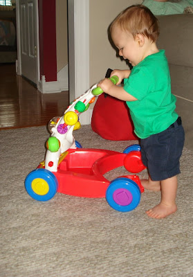 Crawford is growing up so fast. It's amazing how babies learn how to do things. He is learning so much. As you could see on the post below. He has started walking with his Walker. So far, he will only do it in front of Jacob and I. He has grown attached to his red wagon. He will not let me take him out of it. He cried for 10 minutes the other night when I took him out. I really hated to take him out but it was late and I was so hot! He stayed mad at me for a while! Luckily he is not at the stage where he remembers those things for a while! Crawford is slowly but surely learning to eat and like table food. I think his ear problem has been part of the hold up. He is really becoming adjusted to his new class room at daycare. He was in a younger class. He just moved up to a class with kids his age and it has made the biggest difference. He used to go around steal all of the kids toys b/c they could not crawl, now he is with kids that can chase after him. I am not sure he likes that. Crawford is just like his dad in more ways than 1. I walked in his classroom last week and his teacher had the music on and was dancing. All of the kids were bouncing up and down and clapping. Crawford was the only one sitting with an expression on his face like what do I do! Just like his daddy! No dance moves!! It was so funny! I could go on and on but I will update you more through out the week. Crawford will be 10 Months old tomorrow! Below are some pictures from the weekend. I just got a new camera. I have no idea how to use it but I have been wanting it for while. If anyone knows anything about the Nikon D60, please let me know!